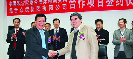 煙臺眾德集團(tuán)與中國科學(xué)院煙臺海岸帶研究所簽訂戰(zhàn)略合作協(xié)議,采用酶解超聲波技術(shù)萃取海藻液,研發(fā)海聚能系列海藻肥。