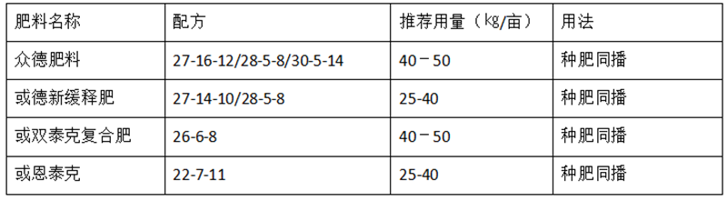 (2)推薦施肥套餐(根據(jù)用肥次數(shù)分類(lèi),結(jié)合目標(biāo)產(chǎn)量、地域、品種、地力等適當(dāng)調(diào)整)