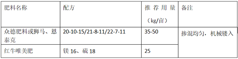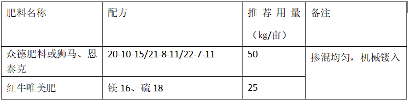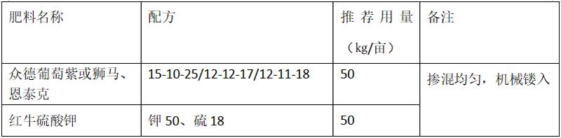 ?。?)推薦施肥套餐(根據(jù)目標(biāo)產(chǎn)量、地域、品種、樹(shù)勢(shì)、樹(shù)齡、地力等適當(dāng)調(diào)整)